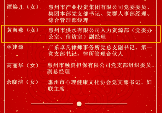 惠州市“兩優(yōu)一先”名單公布, 市水務(wù)集團(tuán)1黨員1黨組織上榜