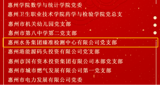 為表彰先進(jìn)、弘揚正氣,激勵全市各級黨組織和廣大黨員再接再厲、擔(dān)當(dāng)作為,加快打造廣東高質(zhì)量發(fā)展新增長極,市委決定,授予96名同志“惠州市優(yōu)秀共產(chǎn)黨員”稱號,授予91名同志“惠州市優(yōu)秀黨務(wù)工作者”稱號,授予122個黨組織“惠州市先進(jìn)基層黨組織”稱號。其中市水務(wù)集團(tuán)黃海燕獲“惠州市優(yōu)秀黨務(wù)工作者”稱號,臻準(zhǔn)檢測中心黨支部獲“惠州市先進(jìn)基層黨組織”稱號。
