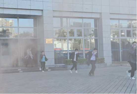 “報(bào)告!三樓發(fā)現(xiàn)火災(zāi)警報(bào)!”按照演練方案,工作人員在市水務(wù)調(diào)度中心三樓“發(fā)現(xiàn)”火情,并按下消防報(bào)警按鈕。隨后消防控制室工作人員向演練指揮組長(zhǎng)報(bào)告火情,啟動(dòng)市水務(wù)調(diào)度中心大樓消防應(yīng)急預(yù)案。消防控制室立即拉響大樓消防警報(bào),滅火消防小組火速趕往起火點(diǎn)進(jìn)行滅火。與此同時(shí),在濃烈的煙霧和刺耳的警報(bào)聲中,各樓層員工迅速從樓梯有序疏散至一樓空曠地方。