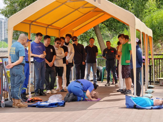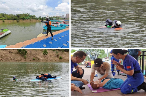 8月22日上午9時,桃花源游客服務(wù)中心聯(lián)合惠州市藍(lán)天救援隊、惠州市槳板運動協(xié)會在桃花源水上運動中心開展“防溺水專項應(yīng)急演練”。此次演練統(tǒng)籌組織了景區(qū)保安、水上項目全體員工、經(jīng)營業(yè)態(tài)負(fù)責(zé)人等30余人,圍繞“發(fā)現(xiàn)—呼救—救援—醫(yī)療”全鏈條開展實戰(zhàn)化水上安全救援演練。